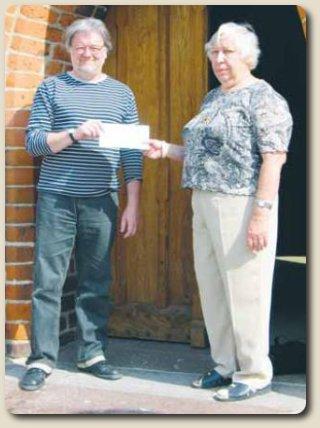 Den mangeårige formand Grethe Mikkelsen ønskede at træde tilbage i forbindelse med den årlige generalforsamling, og da der ikke rigtig meldte sig nogen til at »bære fanen videre«, besluttede man sig for at nedlægge foreningen. Foreningens aktiver og passiver er efterfølgende blevet gjort op, og det har så udløst et forenings-overskud på 36.000 kroner, som man efterfølgende har valgt at donere til en udvidelse af Grenaa Kirkes klokkespil. På billedet overrækker foreningens sidste formand, Grethe Mikkelsen, checken til Grenaa Kirkes klokkenist, Per Rasmus Møller, der selvsagt er rigtig glad for donationen.