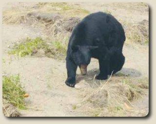 Langsomt stikker den snuden frem... den store sortbjørn er godt nok både stor og stærk, men derfor kan man godt være forsigtig! Men godt ser det ud - det store anlæg som ligger for fødderne af den. Et 5 ha. stort område, som domineres af en stor sø omkranset af træer og ægte djurslandsk natur!