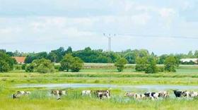 En flok af Landbrugsmuseets jyske kvæg græsser i engene, hvor deres forfædre græssede før dem, inden de skulle på vandring af Hærvejen til Hamborg.