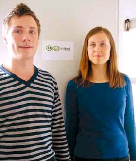 3D-grafiker Mads Eriksen har startet sin egen virksomhed 3D Unlimited i et nyt IT-iværksættermiljø pÃ¥ havnen i Grenaa. PÃ¥ billedet ses ogsÃ¥ Mads’ forlovede, Helene Ersted Deleuran, der kan hjælpe ham med faglig kompetence indenfor omrÃ¥derne engelsk og kommunikation.