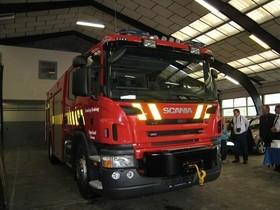 Det er ikke hver dag, at beredskabet får så stor en nyanskaffelse i garagen, og de mange (hovedsagligt mandlige) gæster strakte hals for at se nærmere på dagens "hovedperson", en ny motorsprøjte af mærket "Scania" fra leverandøren Hauberg Technique. Med en vægt på 16000 tons og 310 hestekræfter er den nye brandbil en væsentlig forstærkning af det fælles beredskabs kapacitet.