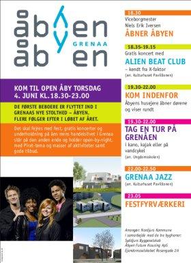 Norddjurs Kommune og bygherrerne i Åbyen inviterer til stor folkefest torsdag d. 4. juni. Succes-bandet Alien Beat Club fra X-Factor og stort festfyrværkeri er nogle af højdepunkterne.
