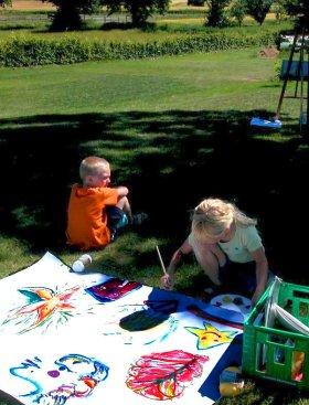 Der malers alle typer malerier. Fantasien flyder. De unges kreativitet får folde sig frit ud.