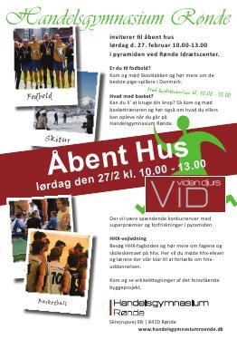 Kom og mød os til Åbent hus lørdag den 27. februar kl. 10.00 - 13.00. Her kan du se, hvilke fag og fremtidsmuligheder en studentereksamen et handelsgymnasium tilbyder. Du kan møde elever, som fortæller om deres hverdag, lektierne, festerne og studieturerne. Og du kan få en snak med studievejlederen og underviserne, som kan fortælle mere om, hvad vi laver til daglig og hvad du kan bruge uddannelsen til.