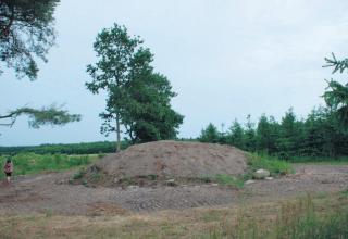 Den reetablerde gravhøj på Rimsø Mark, ca. 1 km. vest for Rimsø Kirke.