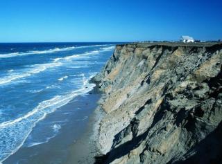 Den nedstyrtningstruede Mårup Kirke ovenfor Lønstrup Klint.