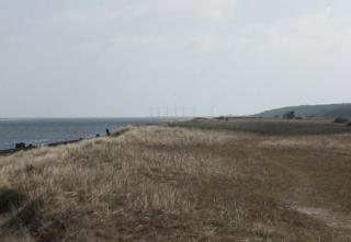Udsigt bagud til Vindmøllerne i Bønnerup Havn, på vej videre til Fjellerup Strand.