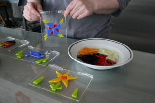 Lav dit eget lille billede af farvede glasstykker, som smeltes sammen i fusingovnen til et færdigt glasbillede. Der er hold kl. 10, 11, 13 og 14. Der er et begrænset antal pladser, så tilmelding er nødvendig på tlf. 86341799. - Glasbilledet kan afhentes fra lørdag d. 11/5, når det er kølet af.
