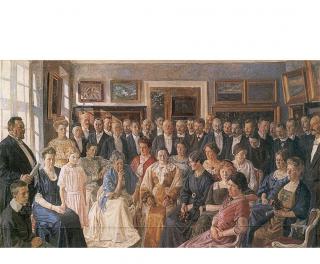 Kernen af Fynboerne samlet ved indvielsen af Faaborg Museum, malet af Peter Hansen.
