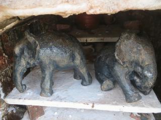 Keramiske elefant-skulpturer.