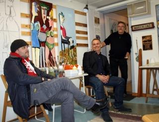 Musikeren Janus Bechmann, poeten Svend Hansen og billedkunstneren Poul Kjær.