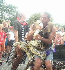Men det bedste ved det hele (specielt for børnene) var, at gruppen ikke bare er slangedansere af navn, nej, de har minsandten også en voldsom pyton-slange med det afrikanske navn Mulinga. Det vakte stor jubel, at danserne bar rundt på den, bed i den, og hvad de ellers kunne finde på, og det var også populært, da børnene (og de voksne) fik lov til at røre ved slangen. Det skete dog først, efter at fordanserne havde ”narret” børnene til at danse med ved pludselig at stoppe slangedansen og sige til børnene, at slangen ikke ville vise sig, hvis ikke de dansede med på en fællesdans. Det gjorde de, og så kom slangen endelig frem.