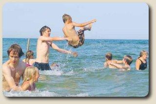 To gange om dagen gik turen til stranden, hvor der blev badet pÃ¥ livet løs, og det var sÃ¥ledes shorts og solcreme og ikke varme sokker, der var brug for i de fire dage, lejren varede, fortæller Kaj Markussen. De 45 børn mellem 6 og 10 Ã¥r, hvoraf mange var nye ansigter, kom fra det nord- og midtdjurske omrÃ¥de med Grenaa, Fjellerup og Kolind i spidsen. Lørdag begyndte juniorlejren for de 10 – 14 Ã¥rige børn.
