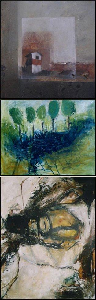 ovenstående malerier er malet af: "Fyrtårn" Turi Brøndum Holm  - "Skovsø" Jeanni Zaar - "Arbejdsbi" Marie Svane Pedersen