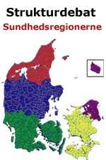 Det er i orden med færre kommuner, men der bliver blot alt for mange, og de bliver alt for smÃ¥. Og hvad skal vi i øvrigt med de fem regioner, nÃ¥r der overhovedet ikke er brug for dem. De skal kun beskæftige sig med sygehusvæsenet, et arbejde, de ”gamle” amter til fulde har bevist, at de ikke magter. Væk med de uduelige amter/regioner! NÃ¥r staten alligevel skal levere pengene, er der overhovedet ikke nogen berettigelse i at beholde dem.