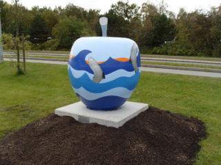 Et af stenæblerne der er opstillet i Ebeltoft.
