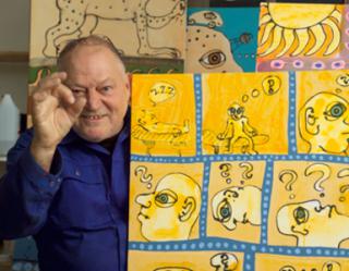 Troels Trier dannede i 60-erne - sammen med forfatteren Dea Trier Mørch - kunstnerkollektivet "Røde Mor" og var medlem af den politisk orienterede rockgruppe af samme navn. Troels Trier har nu lagt karrieren som musiker på hylden og er nu fuldtids maler. Hans specielle tegneserieagtige billeder er ofte en satirisk kommentar til menneskelivets genvordigheder. - Udstillingen kan ses i foyeren i Pavillonen til og med fredag den 11. maj. - Der er fri entre til ferniseringen hvor man bydes på et gratis glad hvidvin.