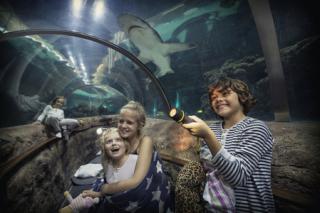 Zzzzov med hajerne med din familie og få en oplevelse for livet ! - Forestil dig at liste rundt med en lommelygte i det store, nattemørke Kattegatcenter. Og forestil dig så at sove lige under eller ved siden af store tropiske hajer. Det er altså ikke noget, man sådan lige får mulighed for hver dag ! - Fra torsdag eftermiddag til fredag morgen får hele familien en fælles og meget lærerig oplevelse: I hører om hajernes liv, dissekerer blæksprutter, der bruges som foder til hajerne, og I håndfodrer andre hajer og dyr i udstillingen. - Entré: 435 kr.