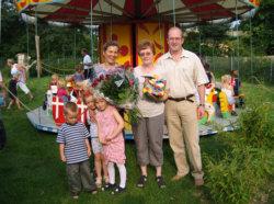 Og så var der ellers dømt fest på legepladsen med hoppeborg og Kolind Håndværker- og Borgerforenings børnekarrussel. Og inde i køkkenet lå seks kagemænd på rad og afventede deres skæbne. De var bagt af byens nye, unge bagermester Michael Lænø, som – rigtigt gættet – også som barn er blevet passet i dagplejen hos Inge-Lise Edvart.