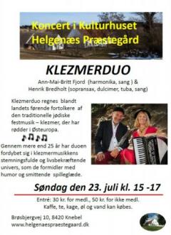 05/05 2023 Koncert med Klezmerduo i Kulturhuset Helgenæs Præstegård søndag d. 23/7 kl. 15-17
