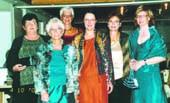 Landbohusholdningsforeningen viste moderne tøj frem. Fra venstre Karin, Agnethe, Eva, Birgit, Karen og Kirsten.