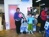 Udover at forsyne sig med en masse gode fødselsdagstilbud kunne kunderne også deltage i diverse konkurrencer. I den forbindelse blandt andet en lokal konkurrence hos STARK i Grenaa, hvor man kunne vinde en HKS mountainbike til en værdi af 4.000 kroner. Var man blandt de første 50 kunder, der købte for minimum 100 kroner, fik man udleveret 1 stk. nøgle, som man så skulle forsøge at låse konkurrence-cyklen op med. Den, som kunne låse cyklen op, havde vundet den! Og den heldige vinder af konkurrencen blev Lukas Kristensen, Storegade 41 i Grenaa, der her ses sammen med den flotte gevinst.
